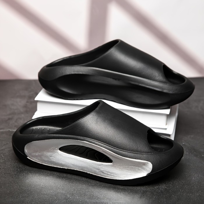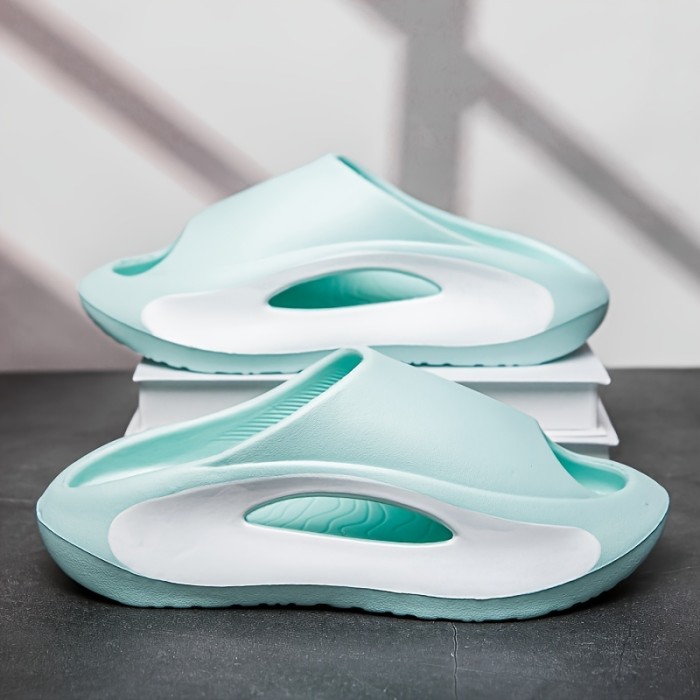 Colorblock Stylish Pillow Slides, Soft Sole Platform Slip On Home Shower Slides, Non-slip Summer Casual Slides