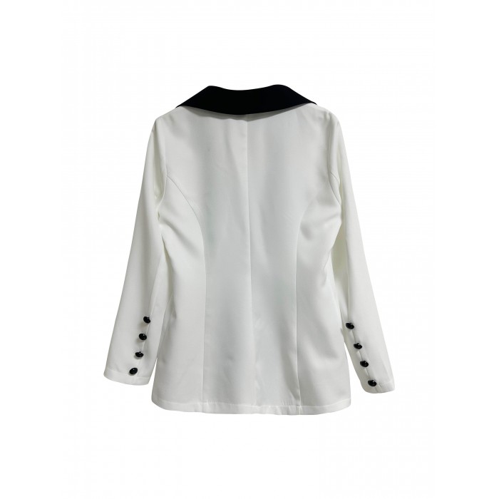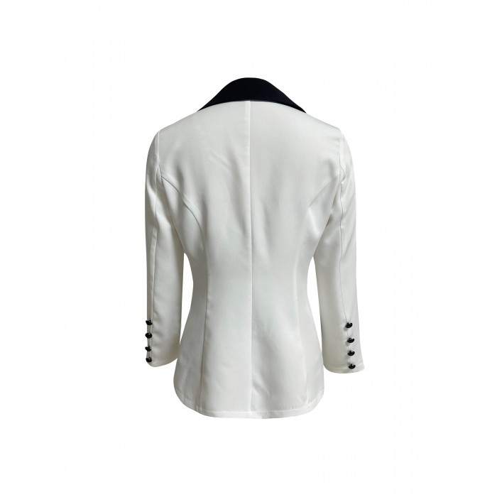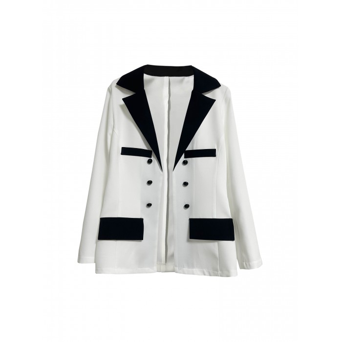 Elegant Color Block Open Front Blazer with Long Sleeve - Women's Outerwear